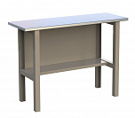 Верстак комплектуется полкой-стенкой, расположенной под столешницей для удобного размещения габаритного инструмента и оснастки. Опорные элементы выполнены сварными из холоднокатаной стали. Все металлические элементы покрыты полиэфирной порошковой краской. Столешница из фанеры толщиной 24 мм, которая покрыта листом оцинкованной стали толщиной 1,2 мм. Глубина столешниц 696 мм. Максимальная масса груза на столешнице - 350 кг.