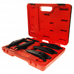 Для снятия/установки запрессованных элементов: шаровых опор, карданного шарнира с крестовиной, анкерных пальцев барабанных тормозов и других аналогичных работ. Размер струбцины: 165 мм. Размер насадок: 69 мм, 56 мм, 45 мм.