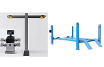 Комплект четырехстоечный подъемник для сход-развала ВСЕХ авто г/п.-4т. с ручной траверсой. Гарантия 2года. В комплекте: анкерные болты 16шт. + противооткатные ограничители 2шт. + противооткатные упоры 2шт. Для любых стендов сход-развал. ВАЖНО!!! ДЛИНА ПЛАТФОРМЫ - 4130мм. — это позволяет прокатывать авто на подъёмнике. Подъём 1850мм, Между колоннами 2775 мм. Усиленный — 960кг металла. +  T 7202 TAB Стенд сход-развал 3D. 2 неподвижные видеокамеры. Напольный. Серия Basic. Для работы на яме или подъемнике. Высокая точность и скорость работы-40 кадров в секунду. База данных 65 000 авто.