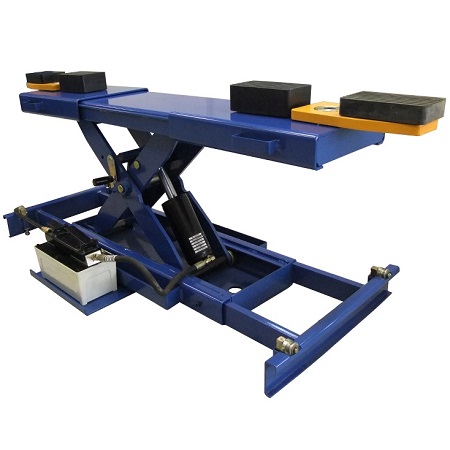 Двухуровневый ножничный подъемник оборудован пневматическим стопорным механизмом – требуется подключение к пневмолинии. Стойка управления подъемником расположена отдельно. Рекомендуется для подъема внедорожников, микроавтобусов, Газелей и легковых автомобилей, в том числе и с низкой посадкой в условиях автомастерской и СТО.Ножничный механизм изготовлен из квадратной трубы.