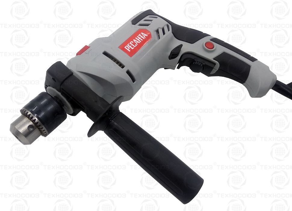 - Рукоятка имеет мягкую накладку и упор в нижней части для надежного захвата дрели во время работы.