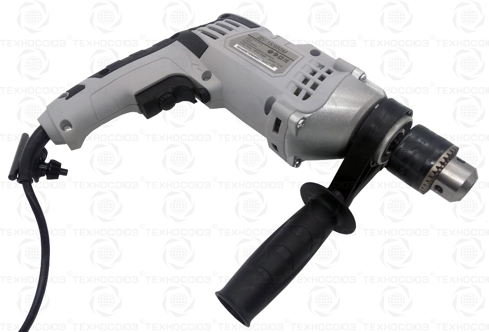 - Рукоятка имеет мягкую накладку и упор в нижней части для надежного захвата дрели во время работы.