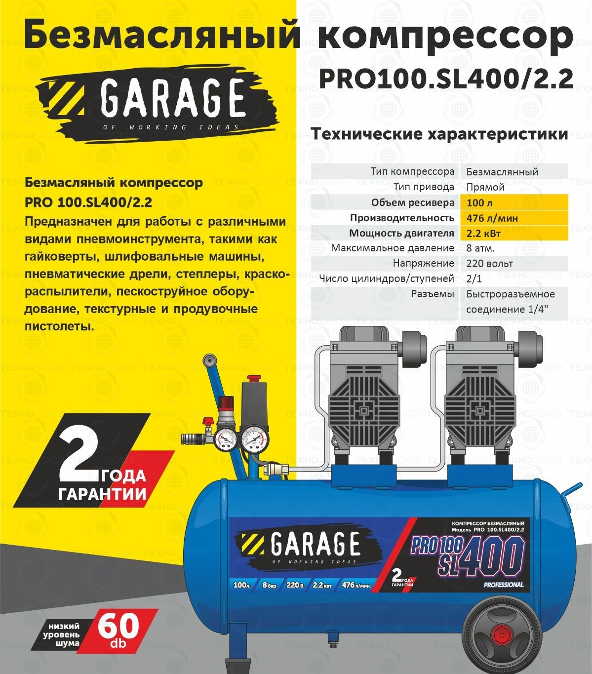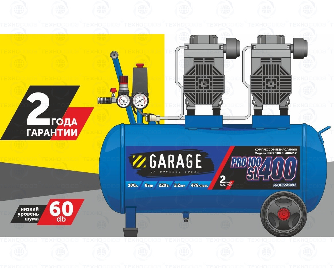 Компрессор безмасляный Garage PRO 100.SL400/2.2