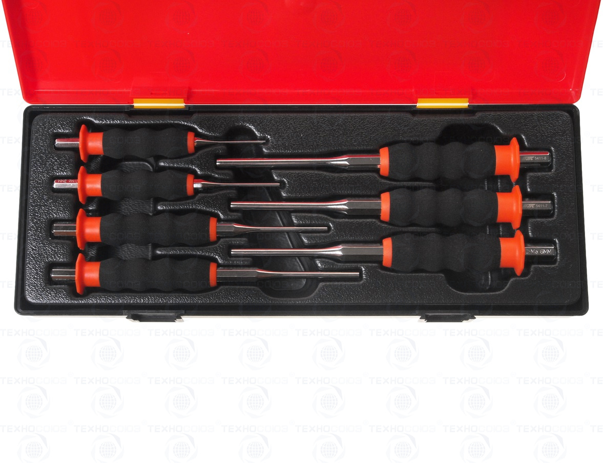 Набор выколоток в прочном презентабельном боксе (7 предметов). В комплекте: (7 шт. выколоток размеры 2, 3, 4, 5, 6, 7, 8 мм). Материал: хром-молибден. Эргономичный дизайн рукоятки.