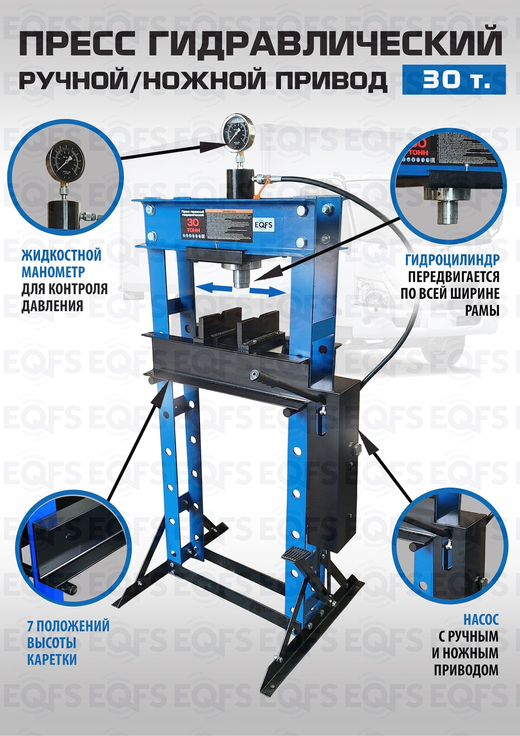 Пресс гидравлический ручной укомплектован насосом с одной плунжерной парой и максимальным усилием 30т.
