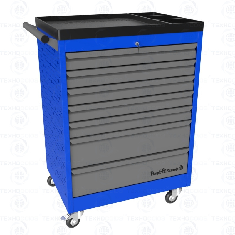 Тележки инструментальные серии PROFFI 950 предназначены для использования на предприятиях любого профиля занятых ремонтом и изготовлением различной продукции. На боковые стенки инструментальной тележки нанесена перфорация размером 25х25 мм и диаметром отверстия 8 мм, что позволяет устанавливать на них навесной инструмент или крючки. Наибольшей популярностью тележки инструментальные пользуются в сфере авторемонта и обслуживания автомобилей .Тележки имеют выдвижные ящики на шариковых телескопических направляющих полного выдвижения с фиксацией в закрытом положении, предотвращающее открывание при передвижении тележки. Ящики имеют центральный замок, который позволяет ограничить доступ посторонних лиц к содержимому ящиков. Тележка инструментальная изготовлена из высококачественного металла ведущих Российских производителей, покрашена порошковой краской производства Германии, имеет итальянскую и турецкую фурнитуру. Тележки для инструмента оснащены двумя не поворотными колесами диаметром 100 мм, одним поворотным и одним поворотным со стопором, которое фиксирует тележку и предотвращает непроизвольное скатывание.