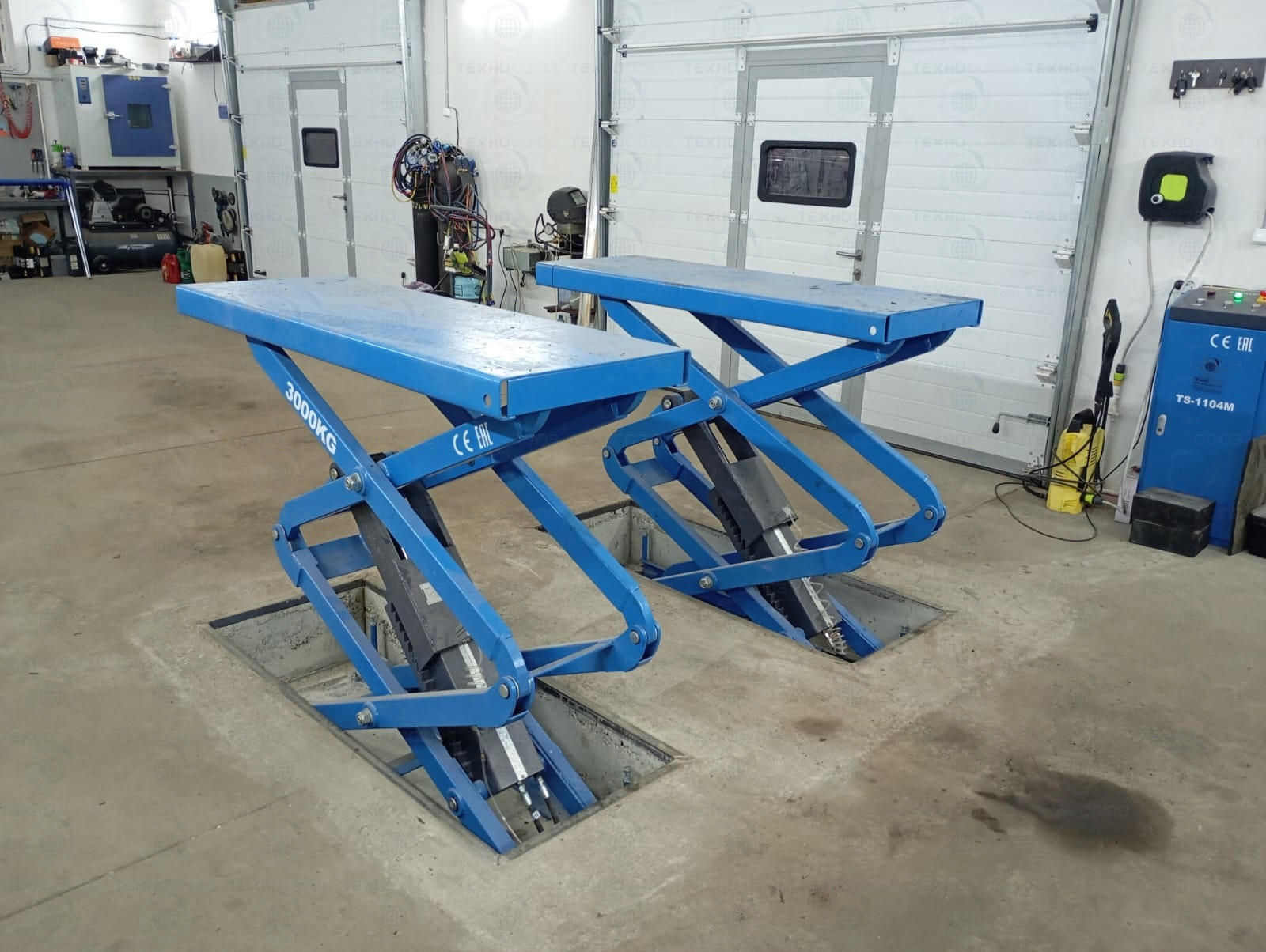 При монтаже заглубляемого подъемника вы получаете ровный пол и свободное пространство, при покупке напольного ножничного подъемника вы получаете простоту монтажа и отсутствие бетонных работ.