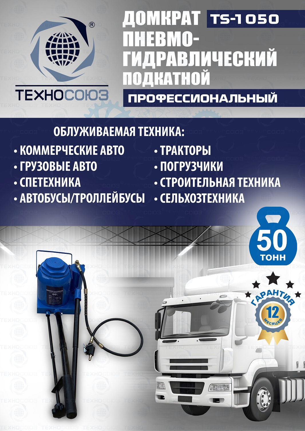 Технические особенности TS-1050 грузовой подкатной пневмогидравлический домкрат 50 тонн: