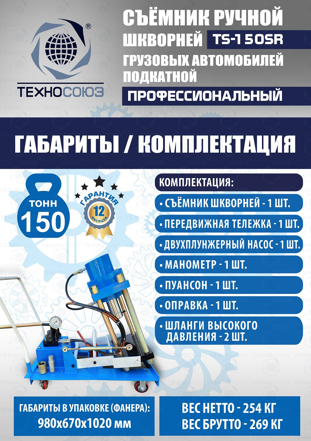 Позволяет работать под разными углами 1 человеку. Сокращает время ремонта. Мобильный. Для выпрессовки шкворней из поворотной цапфы. Для коммерческих и грузовых авто отечественного и импортного производства: MAN, MERCEDES, SCANIA, VOLVO, Корейские и Китайские автомобили, а также трактора, погрузчики, спецтехника. Ручной гидравлический привод. Рабочее окно 400x320 мм. Усилие 150 тонн. Можно использовать при выездных работах. Применяется для выпрессовки подшипников, валов, втулок, сайлентблоков.